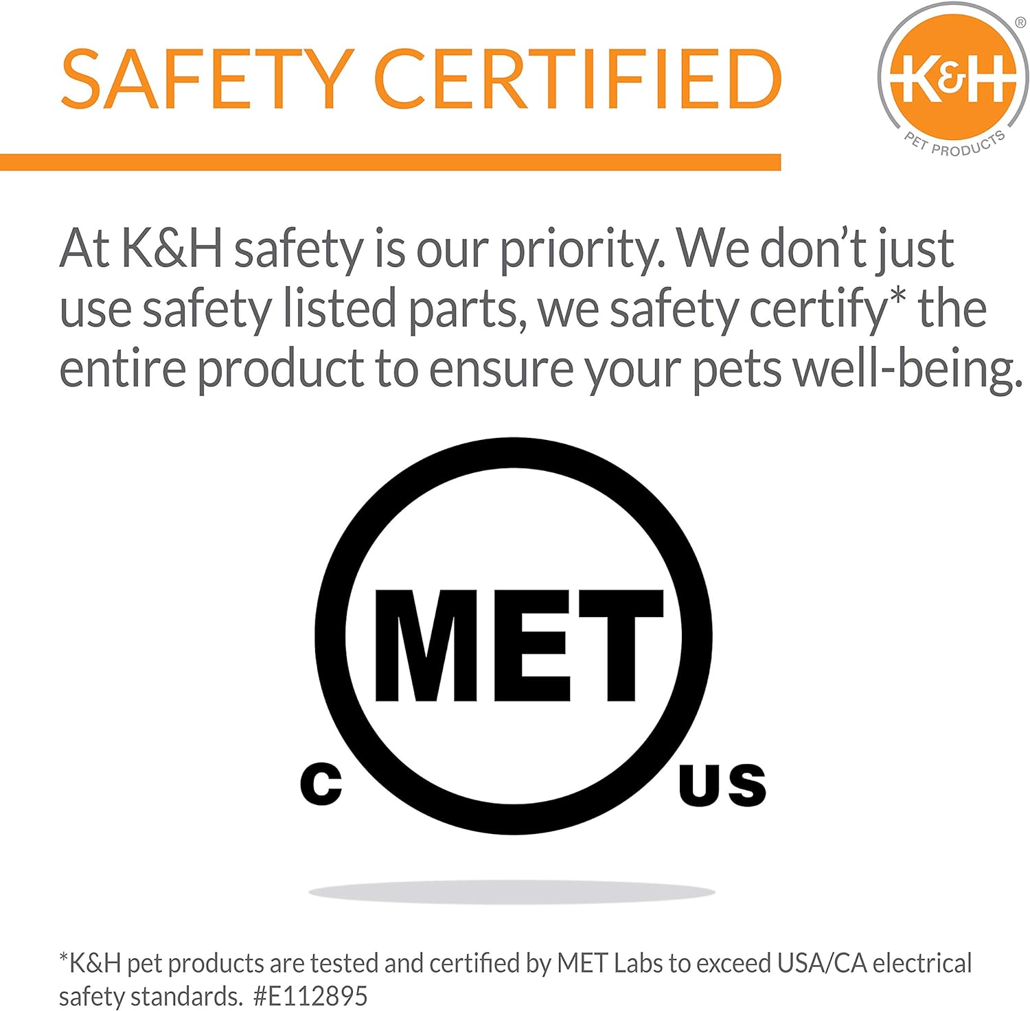 SAFETY: All K&H heated cat houses have been tested & are certified by MET Labs and exceeds USA/CA electrical safety standards; K&H doesn't just use safety listed parts, we safety certify the entire product – For indoor/outdoor use with 110/120 volt electrical current only